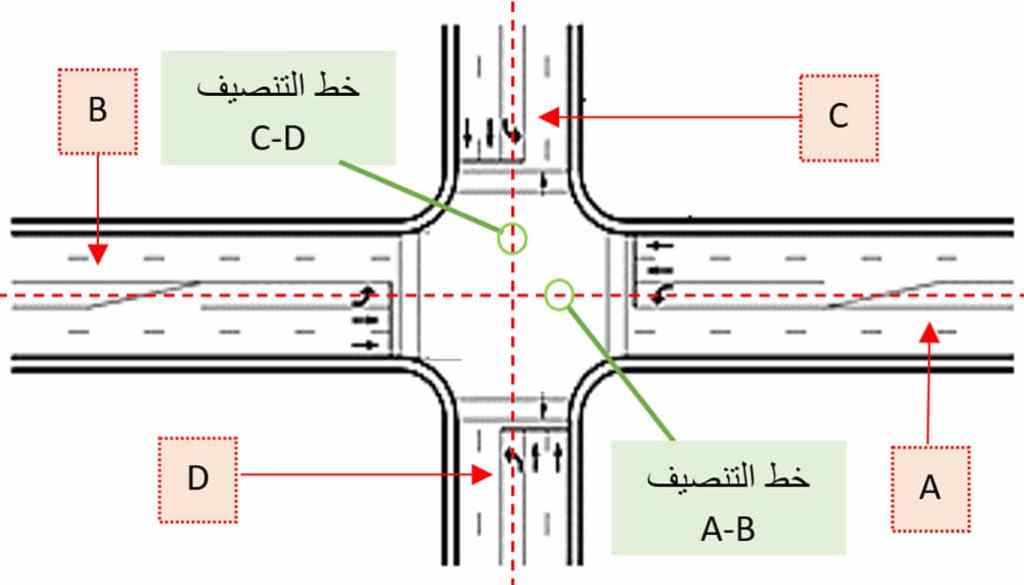 الطرق المتقابلة تشترك في خط تنصيف مستقيم شكل 1-1