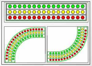 4. ربط المسارات المزروعة بالإشارات المرورية كوظيفة تفاعلية مثل: توحيد لون المسار مع لون الاشارة (احمر-اصفر-اخضر) اثناء الوميض.