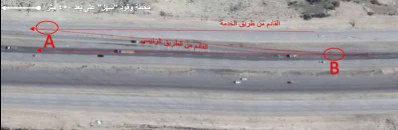 3. نقطة توقف المركبات المخالفة غير واضحة المعالم وتخرج منها السيارات إلى الطريق السريع.